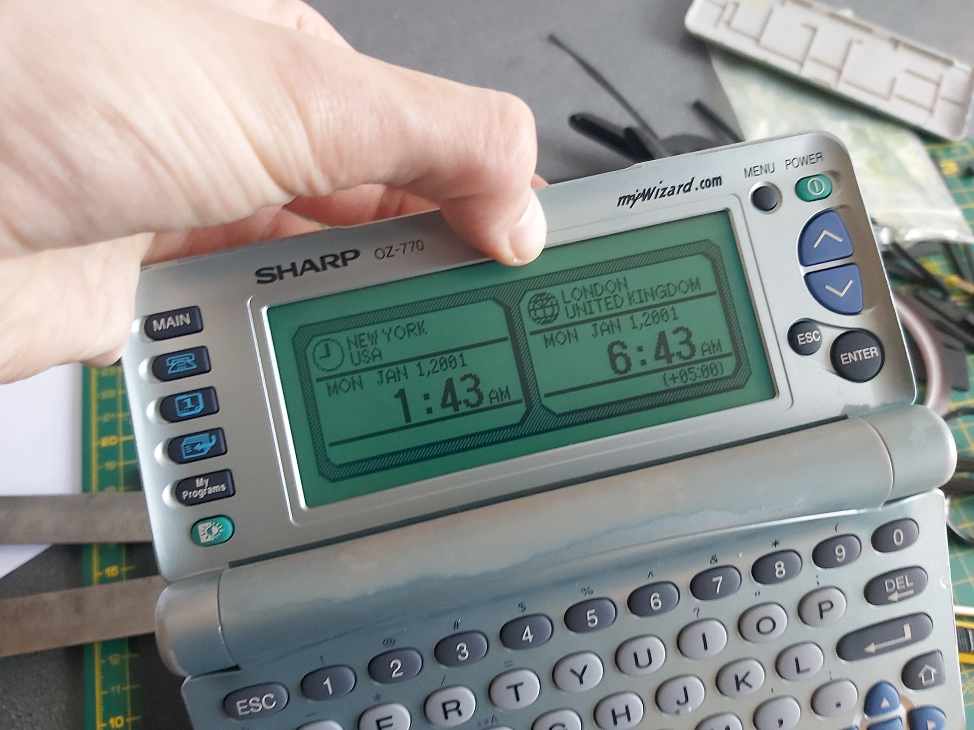 However, some of Sharp's organisers are definitely worth a look, and these are often considerably cheaper to pick up second-hand than pocket computers or calculators. I suspect this is partially due to difficulty in testing them and perhaps a bit of user error – they often require a large number of CR2032 cells to be installed, usually after removing a screwed-on back cover, and have a series of interlock switches that all need to be set just right before the device will even try to switch on. As a result, I've acquired quite a large collection of them for very little money, mostly sold as faulty or untested but all working just fine.